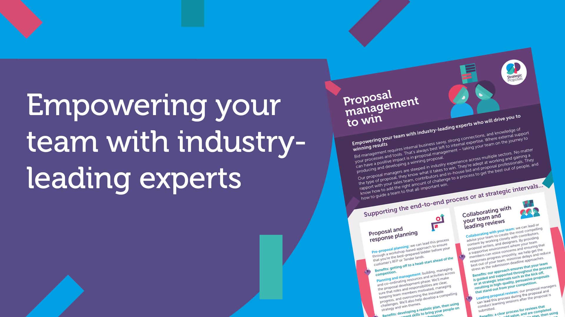 Strategic Proposals brings in expert proposal managers with extensive industry experience to lead the bid and proposal process, working closely with your team to collaboratively develop winning proposals and guiding them to success.